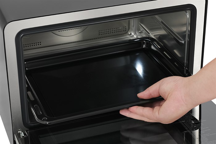 - Khoang lò nướng làm bằng thép không gỉ, đảm bảo an toàn, dễ dàng vệ sinh.
