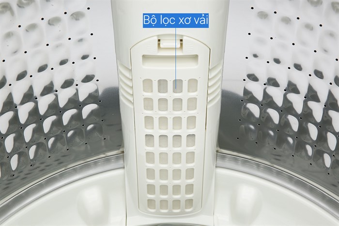 - Lồng giặt dạng Pillow làm từ chất liệu thép không gỉ, với bề mặt lồng giặt hình gối và lỗ thoát nước rất nhỏ chỉ 2.5 mm tránh xơ vải mắc vào lỗ thoát nước, giúp cho việc giặt quần áo trở nên dễ dàng hơn.