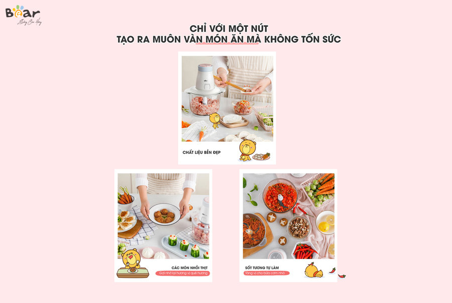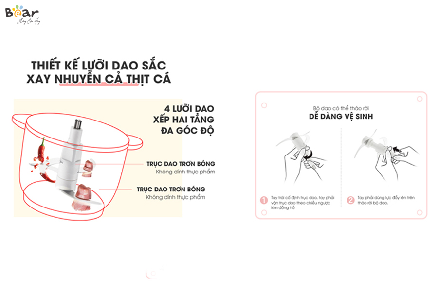 Với 3 yếu tố vàng: đa năng, nhỏ gọn và bền bỉ, máy xay thịt đa năng Bear 2L xứng đáng là một cánh tay đắc lực dành cho bạn trong gian bếp gia đình.
