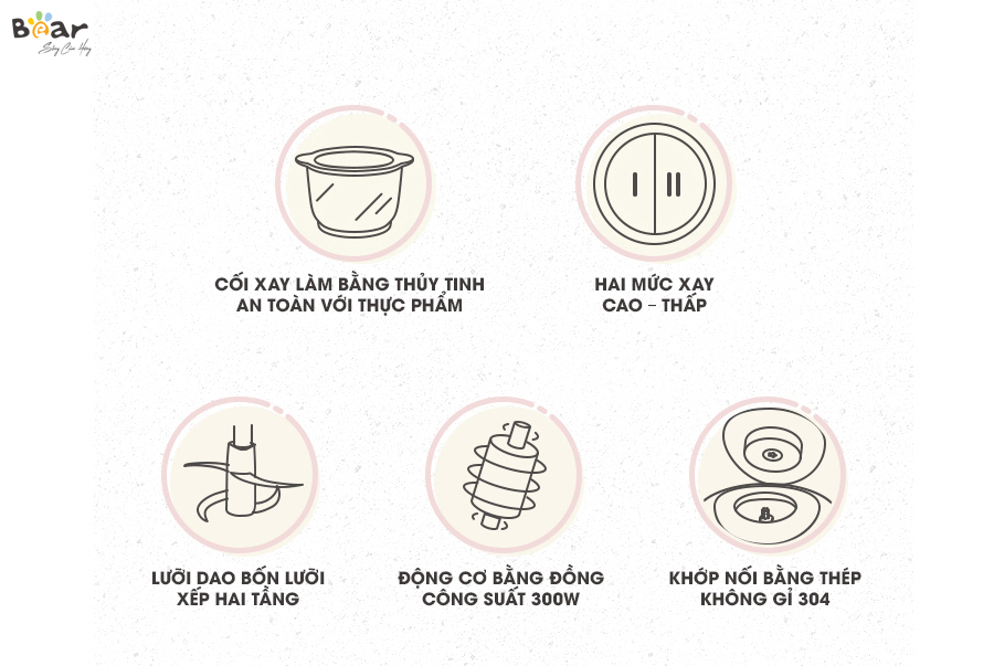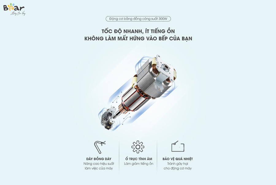 Yếu tố vàng: Máy xay thịt đa năng Bear 2L đảm bảo tính an toàn; vận hành êm ái và chống ồn hiệu quả