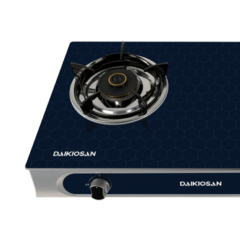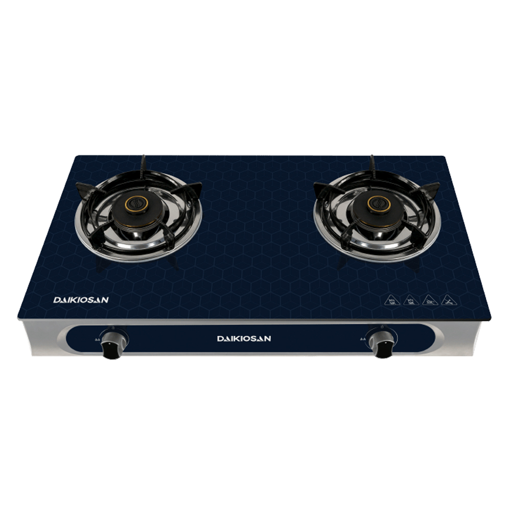 Bếp gas đôi Daikiosan DKG-200003 có 2 lò đun, điều khiển lửa to nhỏ bằng núm vặn tiện lợi, chế biến được nhiều món ăn cùng lúc. Mặt kính với gam màu xanh trang nhã, tô điểm họa tiết trang trí vừa mang lại tính thẩm mỹ cao vừa có khả năng chịu lực, chịu nhiệt, đồng thời dễ dàng vệ sinh sau khi sử dụng.