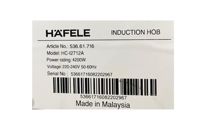 Bếp từ thương hiệu Hafele của Đức, sản xuất và nhập khẩu nguyên chiếc từ Malaysia đảm bảo chất lượng, mẫu mã