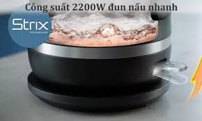Bình đun siêu tốc Philips HD9395/90 có công suất 2200W đun nấu nhanh, tiết kiệm thời gian. Bên cạnh đó bình trang bị hệ thống điều khiển Strix đảm bảo bình đun sẽ tự động tắt khi hết nước hoặc khi được nhấc lên khỏi đế. Điều này làm giảm nguy cơ không có nước mà vẫn bật hoạt động gây sôi khô làm hư hỏng bình và tránh lãng phí năng lượng.