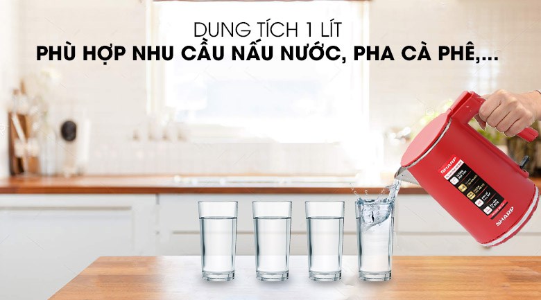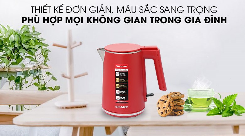 Bình đun siêu tốc Sharp EKJ-10DVPS-RD nhỏ gọn, bắt mắt, sở hữu nhiều tiện ích hiện đại đáp ứng tốt nhu cầu sử dụng nước nóng của gia đình 2 - 3 thành viên.