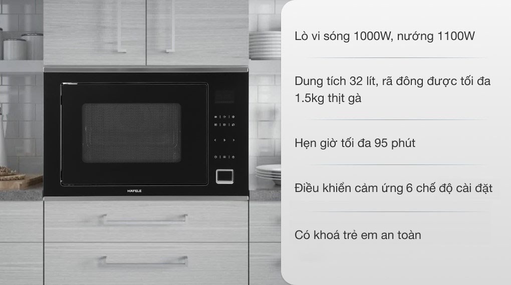 Lò vi sóng lắp âm Hafele HM-B38C 32 lít thương hiệu Hafele đến từ Đức mẫu mã đẹp mắt, sang trọng, nhiều chức năng tiện dụng như nấu, nướng, hâm nóng, rã đông, chế biến thức ăn nhanh chóng, tiện lợi, là sự lựa chọn tin cậy và xứng đáng có mặt trong gian bếp mọi nhà.
