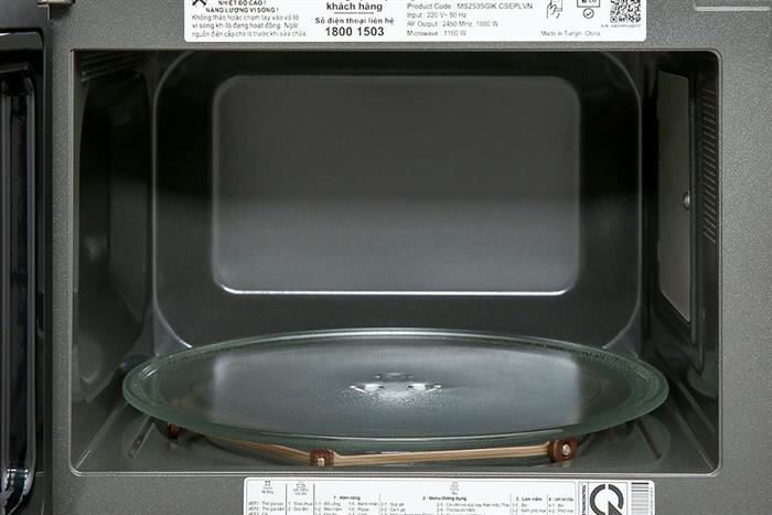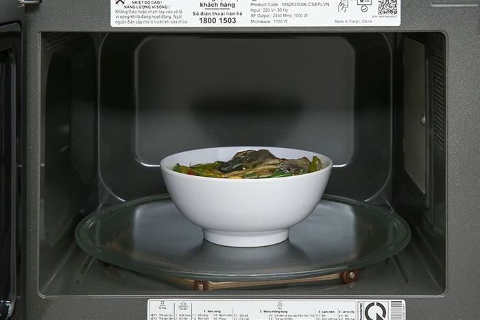 - Công suất vi sóng tối đa 1000W giúp làm nóng và nấu thực phẩm chín nhanh. Lò vi sóng có 5 mức công suất phù hợp với từng chương trình nấu nướng khác nhau.