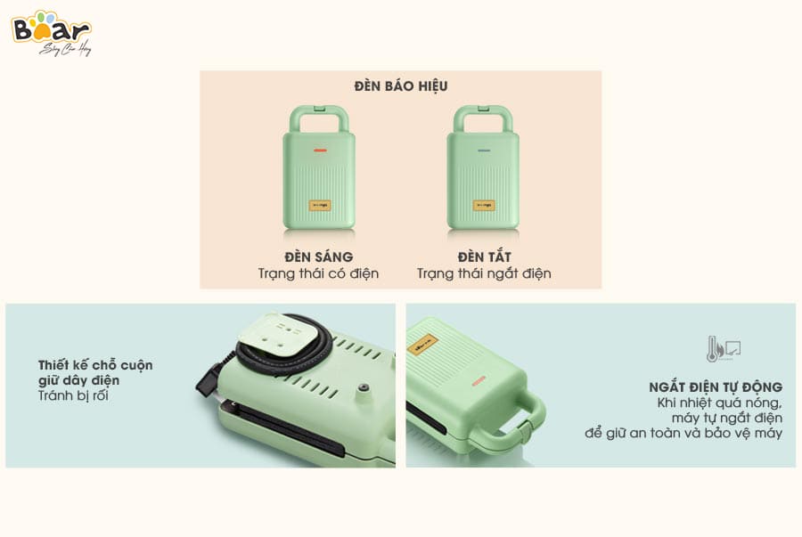 Với máy nướng bánh mì kẹp Bear, bạn hoàn toàn an tâm vào quá trình trước - trong và sau khi sử dụng.