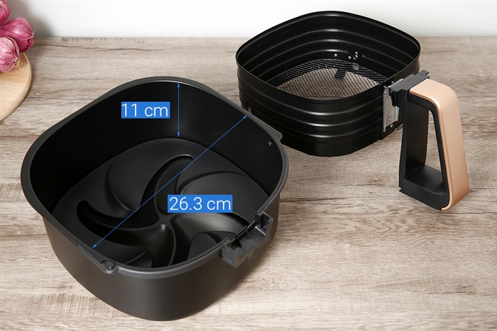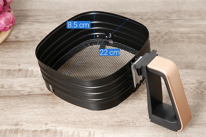 Nồi có dung tích tổng 7.3 lít, dung tích sử dụng 3.5 lít, chế biến được cùng lúc 0.8 kg khoai tây hoặc gà nguyên con dưới 1 kg