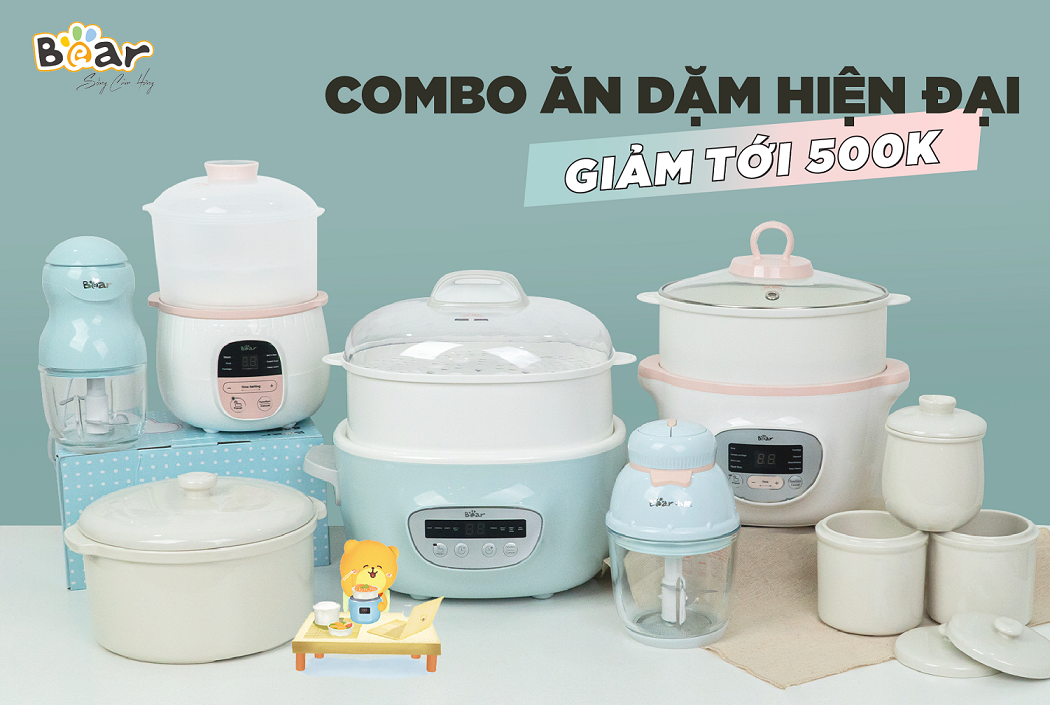 * Với phương pháp ăn dặm theo kiểu Nhật, bạn cần phân loại các loại thực phẩm, từ rau củ cho đến thịt, cá; sau đó nấu/hấp từng nguyên liệu cho bé. Trước đó, nếu chưa từng biết tới nồi nấu cháo chậm Bear, có lẽ, bạn sẽ cần chuẩn bị rất nhiều nồi lớn, nồi nhỏ để có thể nấu theo kiểu ăn dặm này.. Tuy nhiên, nếu bạn sử dụng nồi nấu chậm 2.5L Bear, bạn chỉ cần cho từng nguyên liệu vào từng thố sứ khác nhau và bật chế độ nấu. "Nấu nhiều món trong một lần, nấu một lần cho ra nhiều món" là ưu thế vượt trội của nồi nấu chậm Bear.
