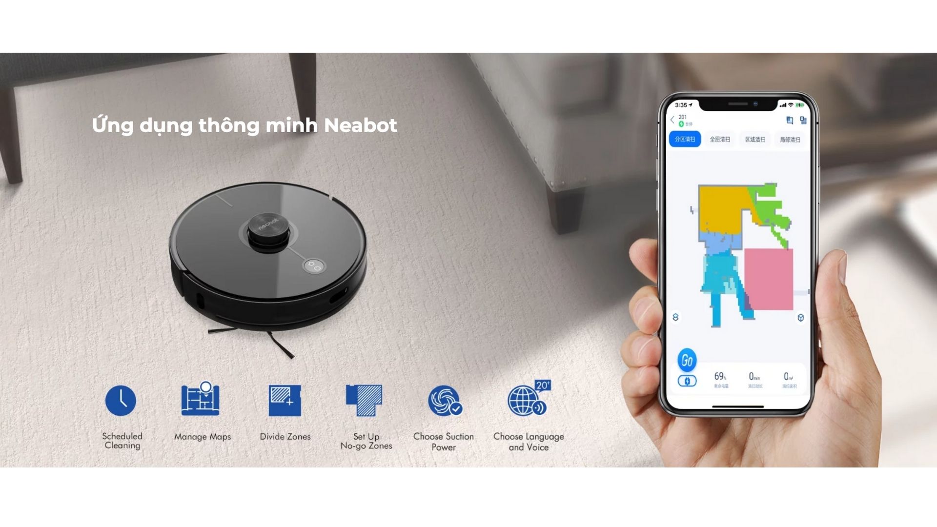 Và cuối cùng là khả năng kiểm soát hoạt động, lịch sử vô cùng tiện lợi trên ứng dụng Neabot . Cài đặt thời gian làm việc cụ thể cho robot. Bạn có thể kiểm soát ở bất cứ đâu mà bạn muốn