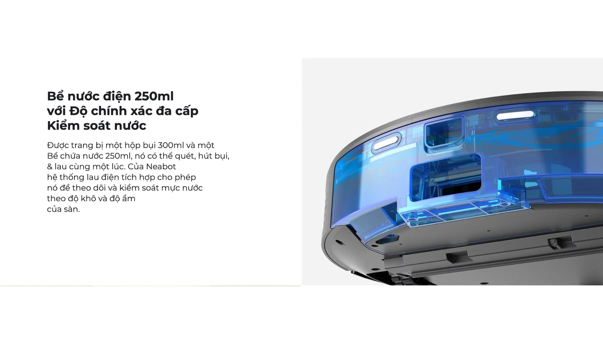 Hộp nước được điều chỉnh bằng điện thông minh. Kết hợp hút và lau mặt sàn 250 m2 cho một lần làm việc. Rẻ lau luôn được cung cấp nước và làm ẩm ở mức tốt nhất. Với dung tích lên đến 250ml.